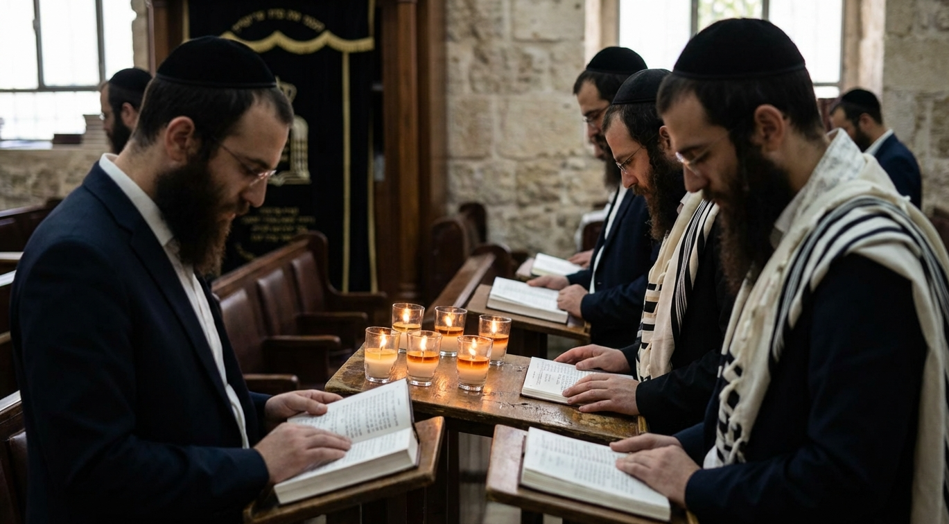 Перед Субботой между Рош Ашана и Йом Кипур, каждая семья зажигает у себя дома дополнительную свечу (суточную) которая названа Нер а-Тшува (свеча покаяния).