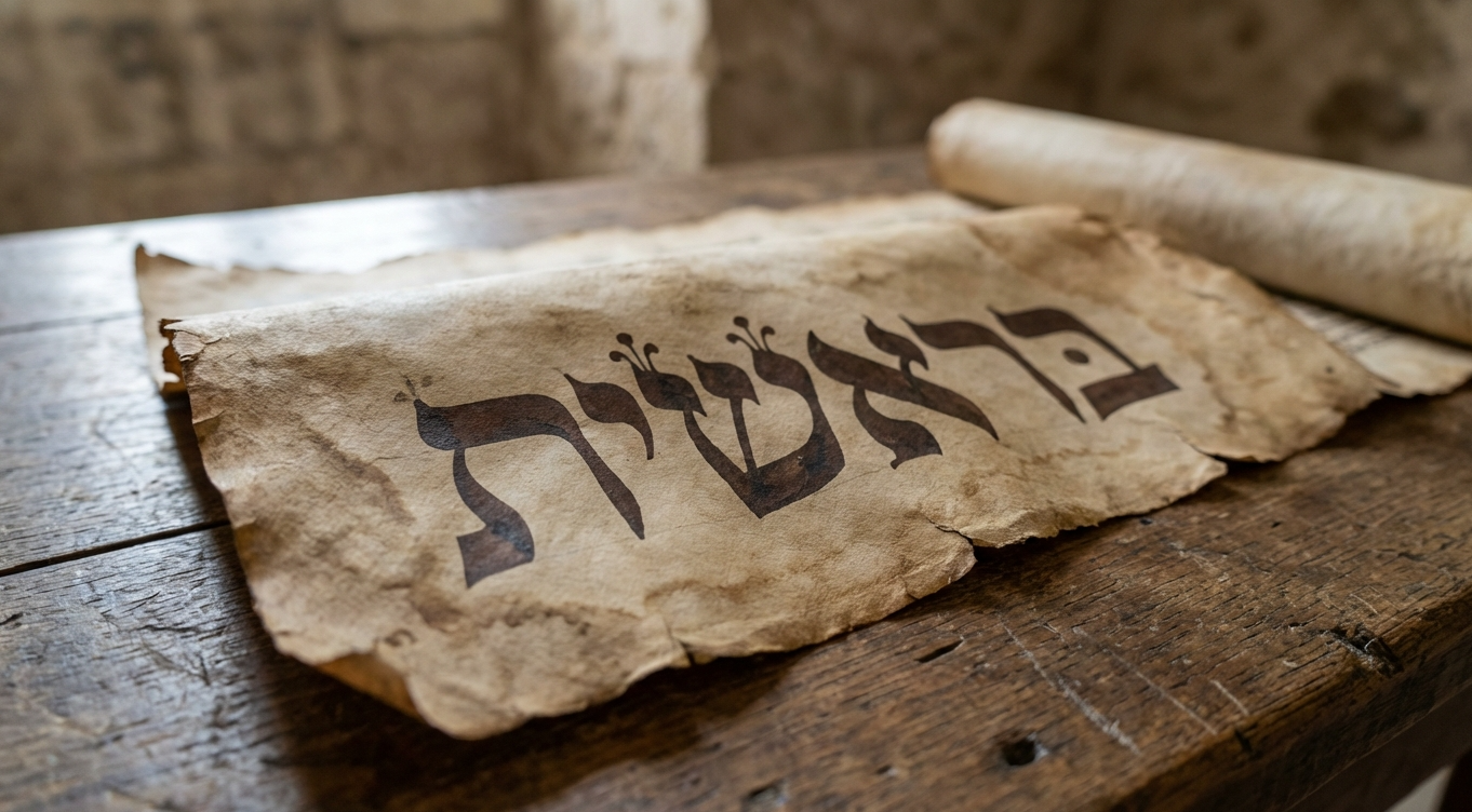 «בְּרֵאשִׁית בָּרָא אֱ-לֹהִים» — «В начале сотворения Б-гом...» (Берешит, 1:1).