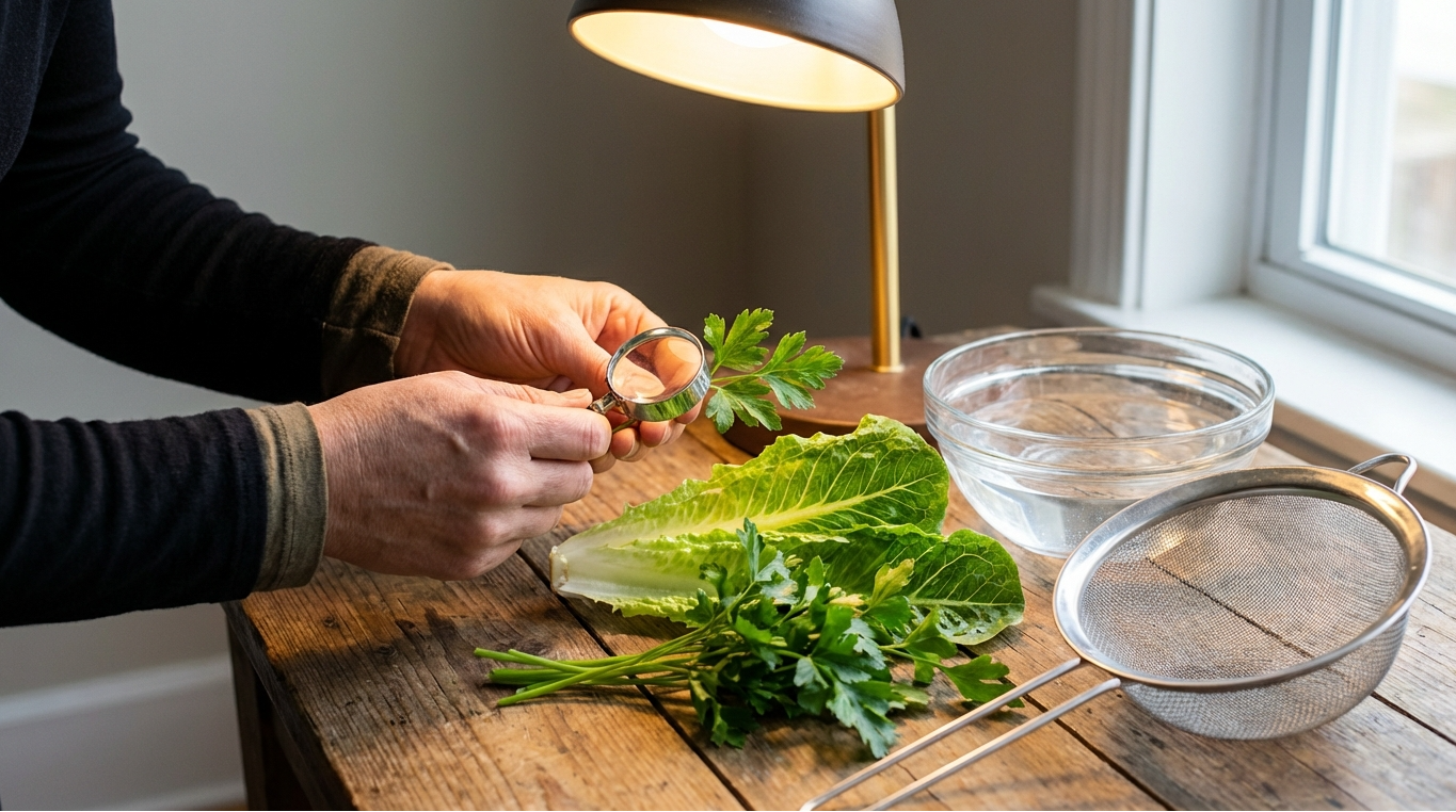 Даже мельчайшие насекомые, незаметные невооружённым глазом, запрещены Торой к употреблению в пищу. Поэтому зелень (петрушка, укроп, листья салата, капуста и т.п.), ягода (малина, инжир, клубника и т.п.) и сухофрукты требуют тщательной проверки на наличие насекомых. Зачастую для этого используют увеличительное стекло, специальное освещение, моющие растворы,сито и т.п.