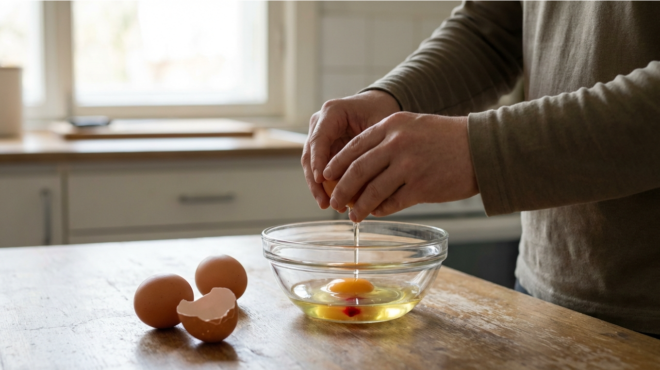 Перед приготовлением яйцо разбивают в отдельную прозрачную посуду и осматривают. Если кровь находится: