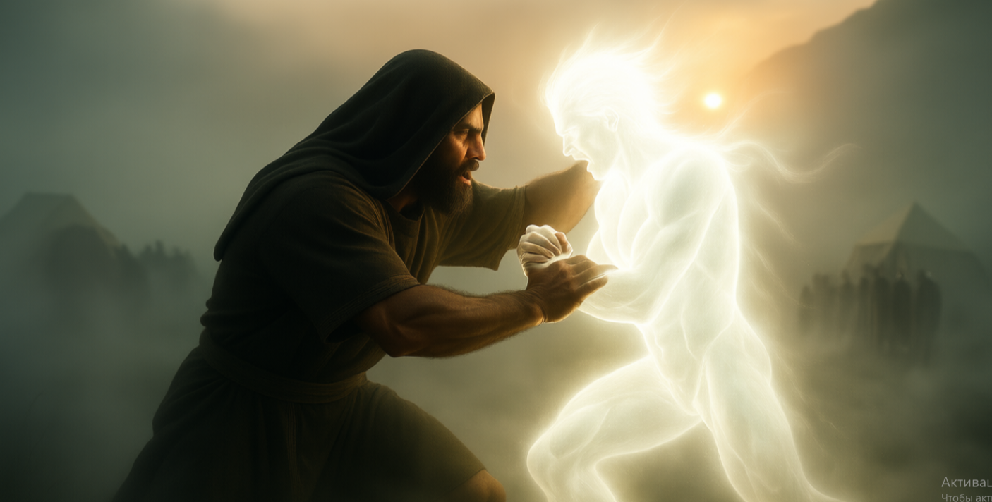 Ночью перед встречей с Эсавом Яаков переправляет всех своих близких и имущество через реку Ябок и остаётся один на другом берегу. Именно в этот момент он сталкивается с ангелом и вступает с ним в борьбу. Эта схватка продолжается до рассвета, и, несмотря на то что Яаков получает повреждение, он не отпускает своего противника, пока тот не благословляет его. В результате этой борьбы ангел сообщает, что Яаков получит новое имя — Израиль, что означает "Одолевший Б-жественное".