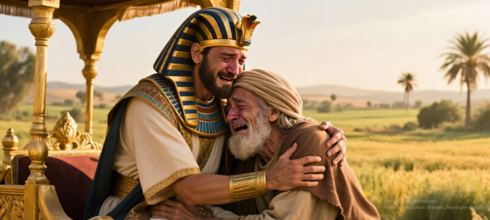 Семья Яакова прибывает в Египет, и Йосеф выходит навстречу на своей колеснице. Когда Яаков и Йосеф встречаются, Йосеф падает и плачет на шее Якова. Он поручает своим братьям сказать фараону, что они пастухи, поскольку это была ненавистная работа в Египте. Это позволяет поселить их в отдельной области. Сыны Яакова встречаются с фараоном, а затем приходит сам Яаков и благословляет фараона. Йосеф поселяется своих братьев в стране Гошен и снабжает их пищей во время голода.