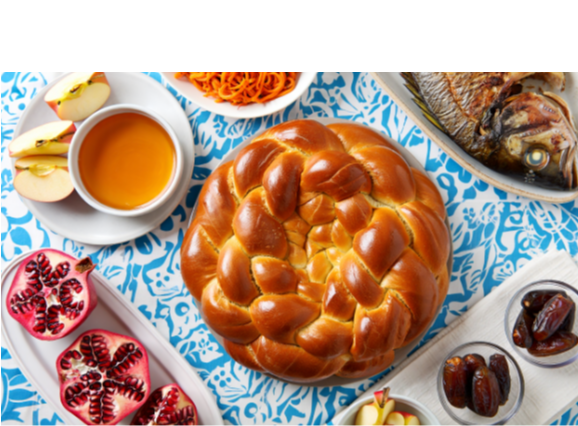 - Яблоко в меду: Во время первой праздничной трапезы, после кидуша и вкушения халы, макают яблоко в мед и просят у Всевышнего, чтобы Он послал добрый и сладкий год.